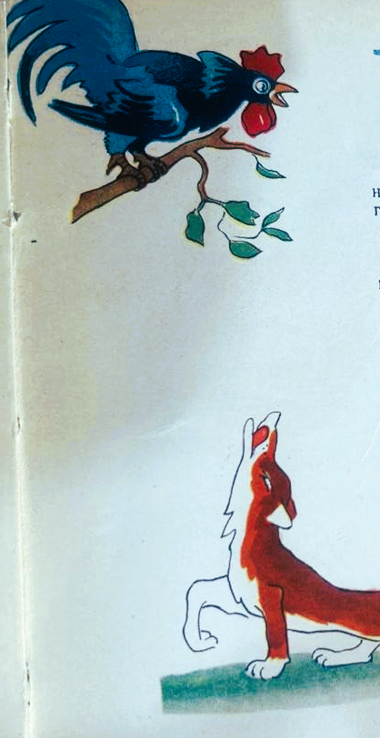 Xo‘roz tulkining hiylasini sezib, bo‘ynini cho‘zib, uzoqqa qaray boshladi.